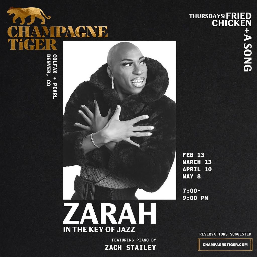 Experience an enchanting evening of elegance and entertainment at "Zarah in the Key of Jazz," hosted by the fabulous Zarah Misdemeanor at @champagne.tiger. This exciting new monthly show promises a delightful blend of live jazz music, powerful vocals, and irresistible drag performances, featuring the exceptional pianist @zachstailey. Join us on the 2nd Thursday of each month for a cozy night filled with jazz tunes and fierce energy that will elevate your night out.