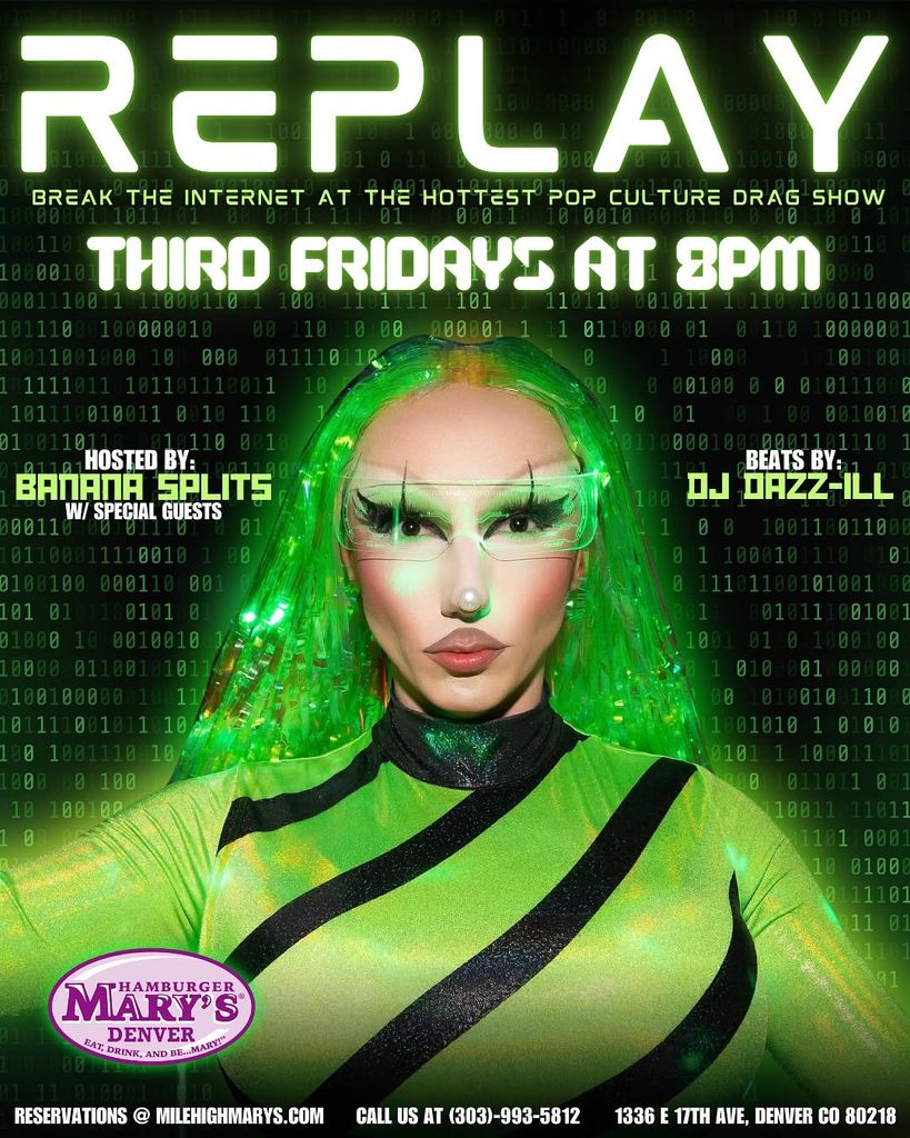 Get ready to gag at "Replay," the spectacular Pop Culture Drag Show happening this Friday at 8 PM at @marysdenver! This exciting event promises a night of unforgettable performances that blend humor, artistry, and your favorite pop culture moments. The star-studded lineup features the sensational ΒΑnAnA BANANASPLITS along with special guests and incredible beats, making this a truly unique experience you won't want to miss.